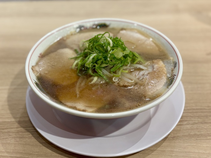 スープには、市場にほとんど出回らない、出産を2回経験した国産黒豚の雌豚のみを使用。かえしには京都の老舗店による無添加・高品質の生醤油を合わせ、澄んだ醤油味にまろやかさと深みを加えています。トッピングには京都産の九条ネギと緑豆もやしを使用。