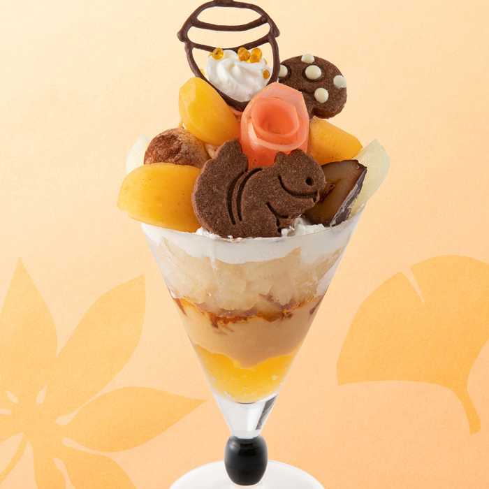 リスやどんぐりの焼き菓子をトッピングしたデザインや、紅葉をイメージした繊細な色使いなど、どの店舗でも秋の情景が感じられるひと品。