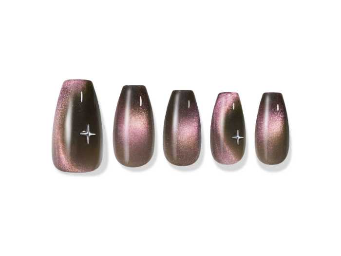 ピンクレッドのマグネットジェルが織りなす光の輪が、指先で静かに輝きます。同じくナヨンPICKの「FLICKER」(税込1,958円)は、透明感のある輝きが魅力。