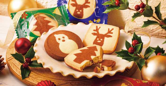 お子さまにも人気の「クリスマスクッキーズ[6枚入]」(税込1,134円)は、ツリーやトナカイなどの絵柄が愛らしいクッキー。片面にチョコレートをコーティングし、見た目も味わいも華やかに♪