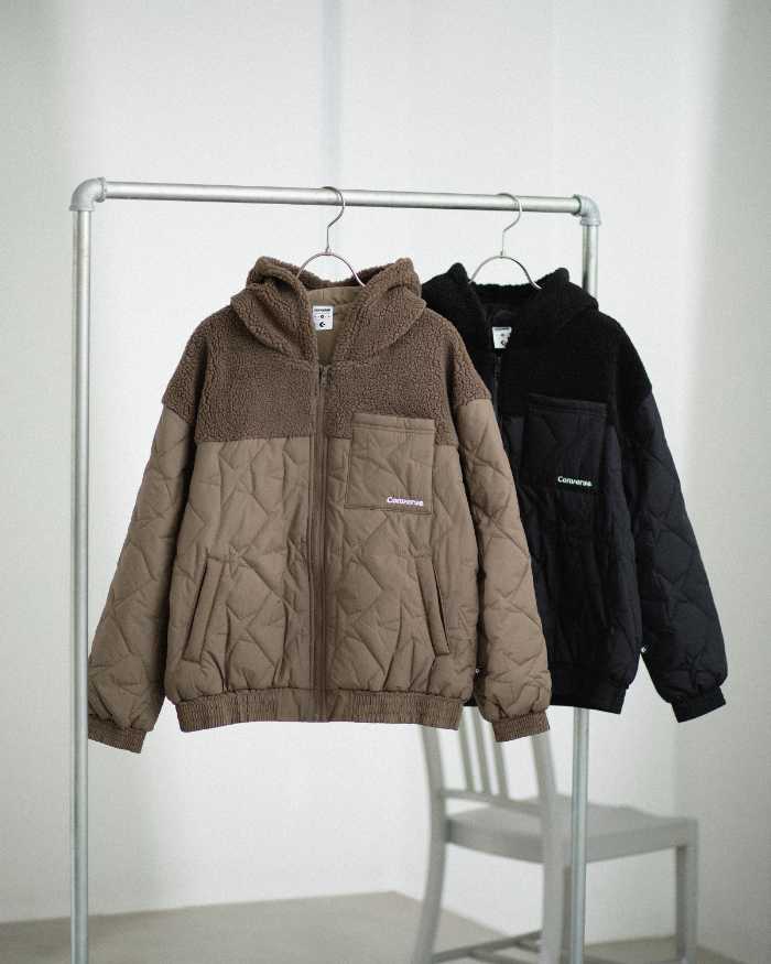 さらに異素材ミックスが魅力の「HYBRID CS QUILT HOODED JACKET LADIES」(10,890円)は、グレージュとブラックの2色展開。