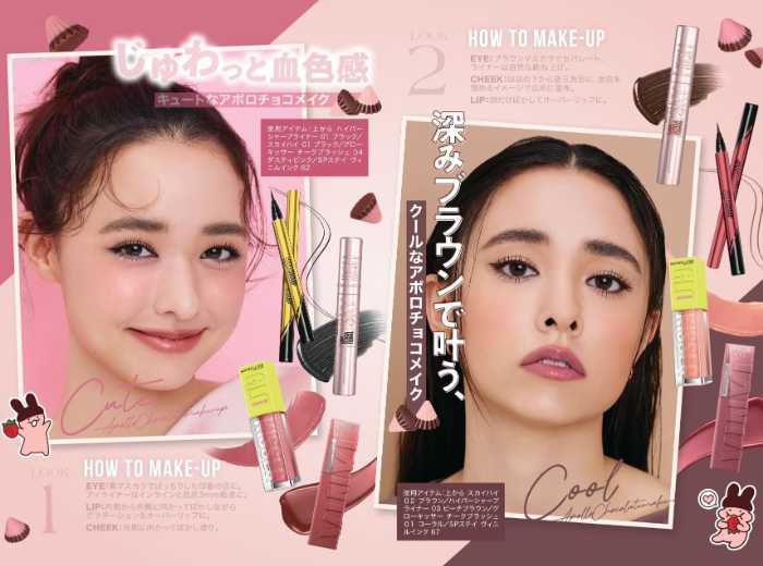 人気の「アポロチョコレート」からインスパイアされた2つのメイクルックが登場。SNSでも話題の“いちご×チョコレート”をテーマに、甘くも大人っぽいメイクを提案します。