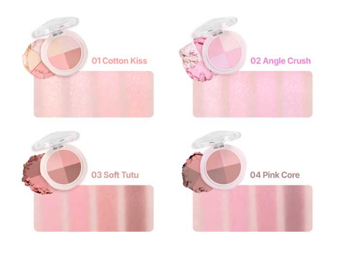 ラインナップは、シャドウパレット2種、マルチクアッドシャドウ、シルキーベールブラッシュ、ジューシーデューイグロウティント、キャンディローリングポットの全5アイテム。