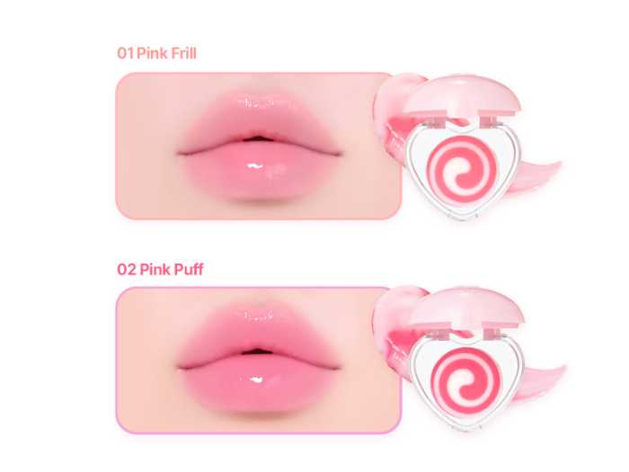 01 ピンクフリルと02 ピンクパフの2色展開で、保湿成分をたっぷり配合。どちらも、ぷるんと透明感のある唇を叶えます♡