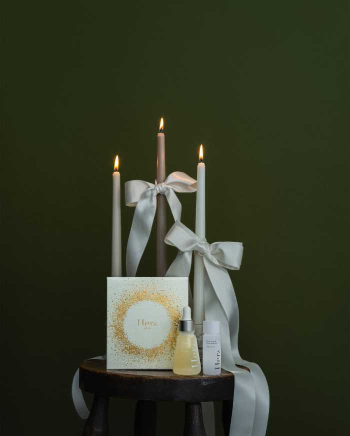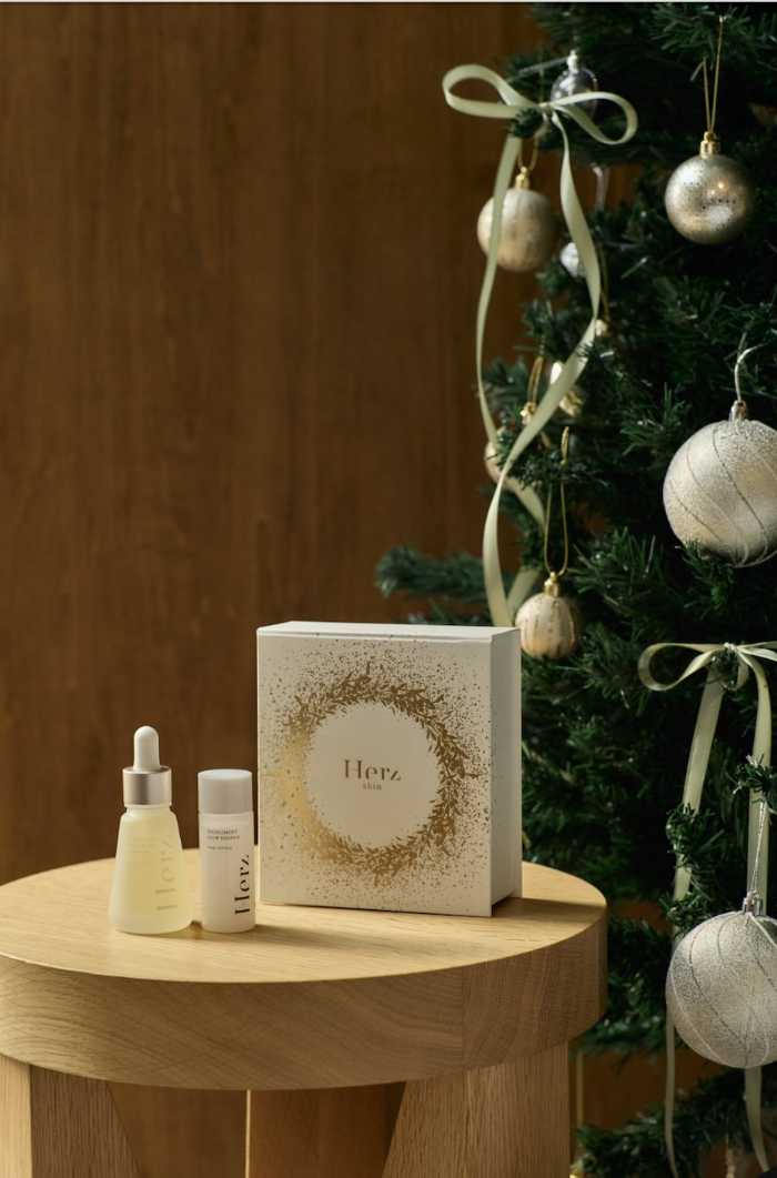 “心と肌を包む”というブランドメッセージを体現する「フルフィルメント ホリデー コレクション 2025」は、Herz skinの人気アイテム2品を一箱に詰めた特別セット。
