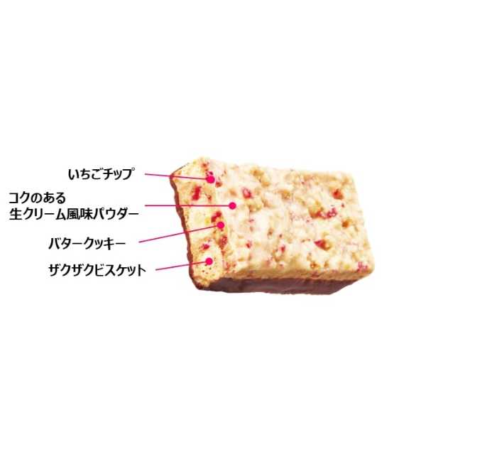 そこに甘酸っぱいいちごチップをプラスし、冬らしい優しい味わいに仕上げています。