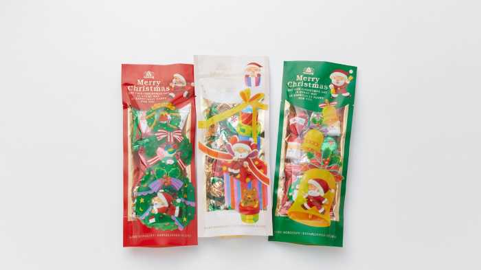 「クリスマストゥリンキット」(各9個入/各648円)は、赤と緑の2種類。ブーツ型マスコットがついたバッグ入りで、お子様へのギフトにもおすすめです。