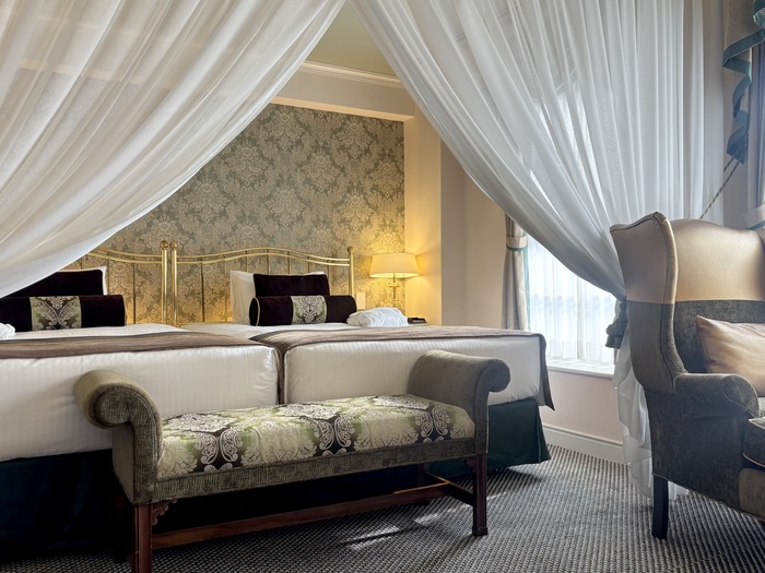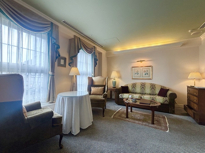 「プレジデンシャルツイン」、扉をあけると広々とした空間、英国調の優雅な客室は、一部屋毎にお部屋の仕様が異なり、入ったお部屋はホテルで一部屋だけの特別な空間、オシャレなインテリアはどちらも上品で、お写真を撮りたくなるような素敵なお部屋