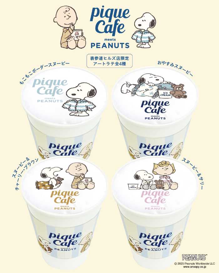 さらに、スヌーピーやチャーリー・ブラウンなど全4種類の**キャラクターアートラテ(¥760)が登場!ラテのデザインを自分で選べるので、友人同士で違うキャラを楽しむのもおすすめです。