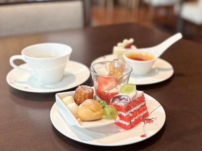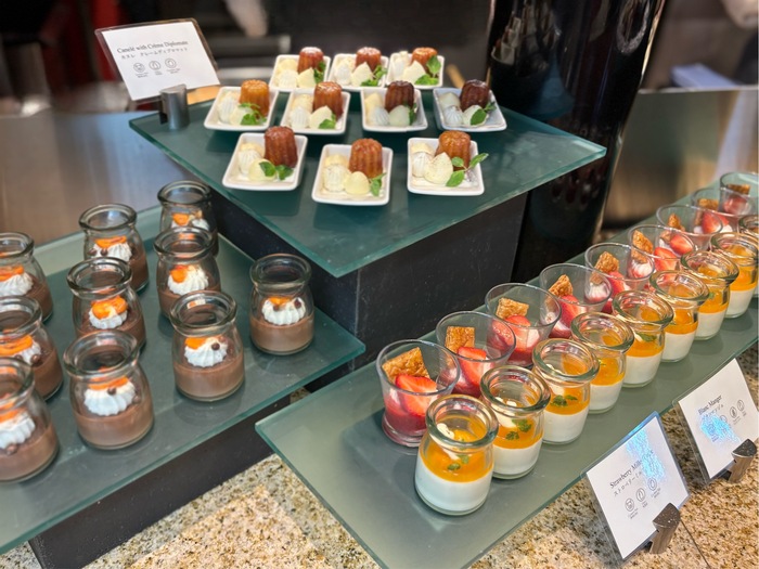 かわいらしいグラスに入った「ストロベリーミルフィーユ」にカリッともっちり食感の「カヌレ クレームディプロマット」や濃厚でカラメルのほろ苦さが大人の味わい「バニラクレームブリュレ」など、スイーツビュッフェも全て、食べ放題!