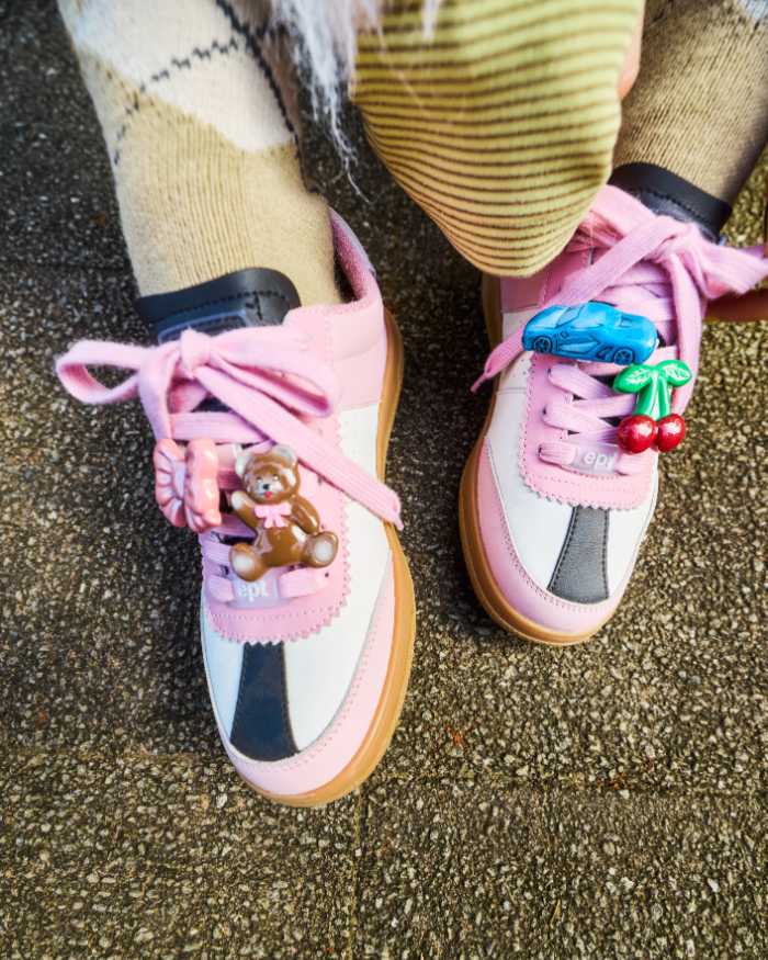 LITTLE SUNNY BITE×EPTのコラボスニーカーは、見た目のかわいさだけでなく、歩きやすさや履き心地にもこだわった仕上がり。日常のスタイルに遊び心をプラスしてくれる特別な一足です。