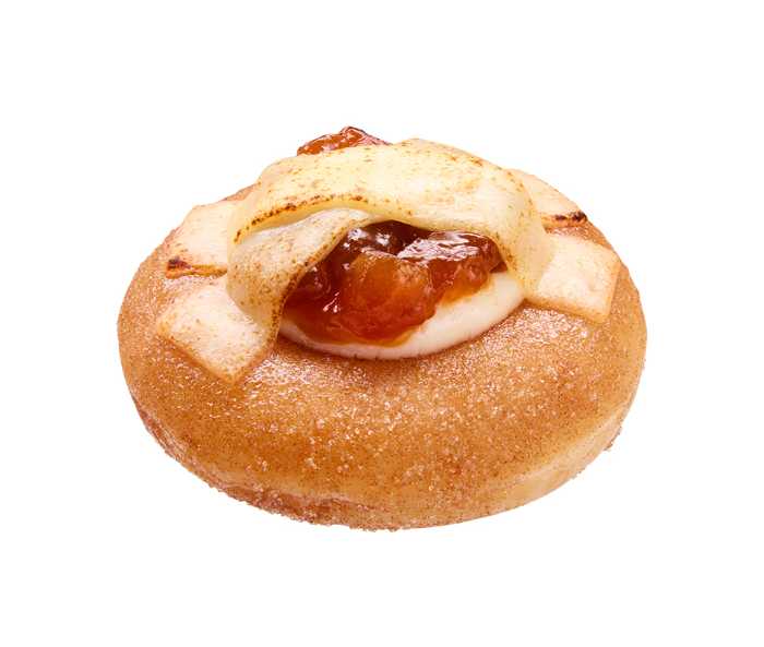 ふんわりシナモンシュガーの生地に、ミルククリームとキャラメル風味の角切りりんごフィリングを重ね、仕上げにチーズを2枚トッピング。