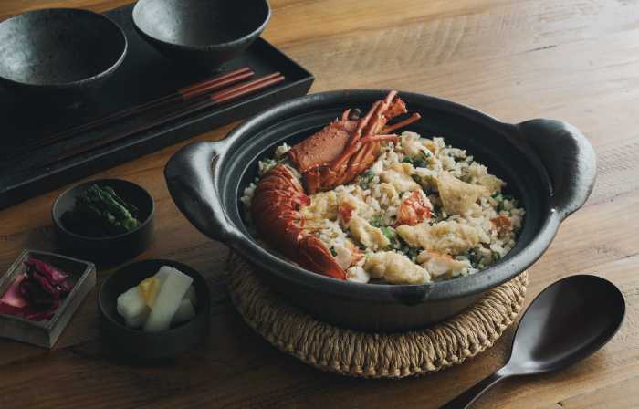 「伊勢海老とあわびの贅沢炊き込みごはんの素」(6,000円/税込6,480円)は、木箱入りの特別仕様。伊勢海老とあわびそれぞれの旨みを堪能できる2種セットです。