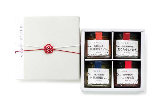 「ごはんのお供4選」(4,800円/税込5,184円)は、銀鮭や真鯛、黒毛和牛、南高梅などを詰め合わせた上質な逸品。