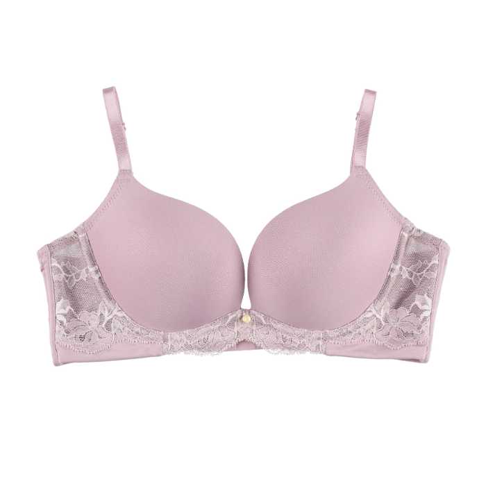 脇高設計で脇肉をバストに導き、すっきりとしたラインに。サイズごとに厚みを変えたモールドカップが自然なボリュームを演出します。