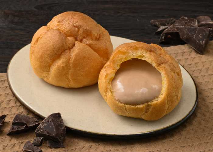 ふんわり焼き上げたシュー皮に、3種のチョコレート(フルーティー・ビター・スイート)をナッティなカカオとブレンド。