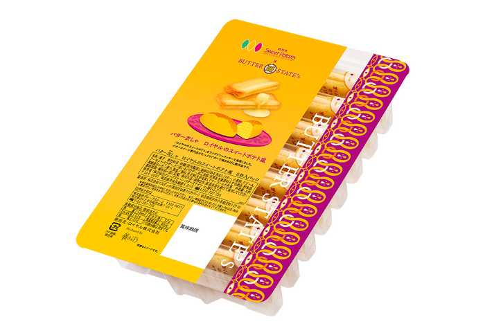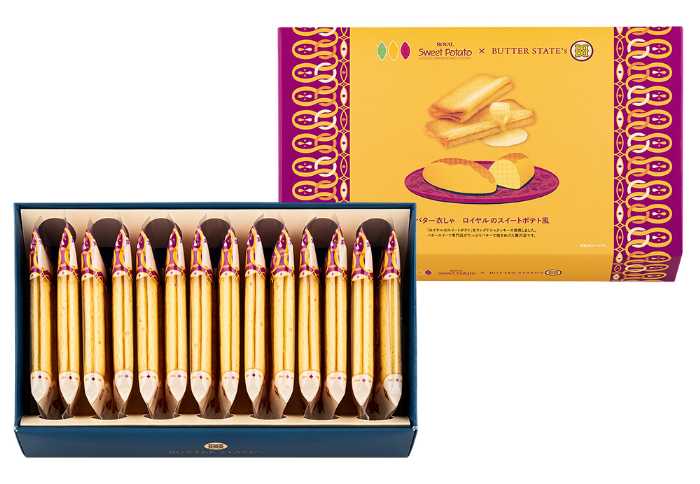 『バター衣しゃ ロイヤルのスイートポテト風』は、焼きたてのバターラングドシャをまるで薄衣のように4層重ねた新食感スイーツ。