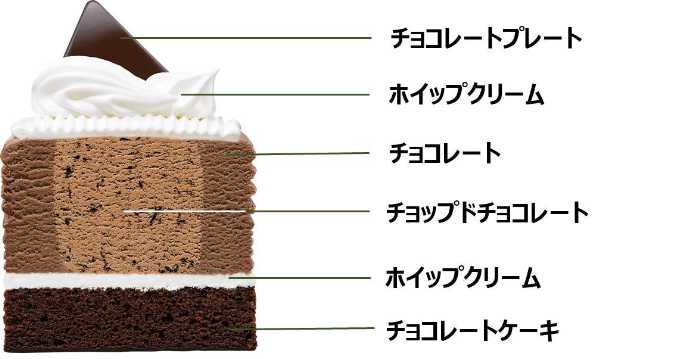 しっとりとしたチョコレートケーキ層を重ね、リッチなのに軽やかな味わいに仕上がっています。