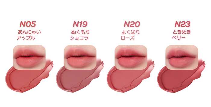 N05 あんにゅいアップル:くすみを帯びたアップルピンク。自然な血色感をプラス。