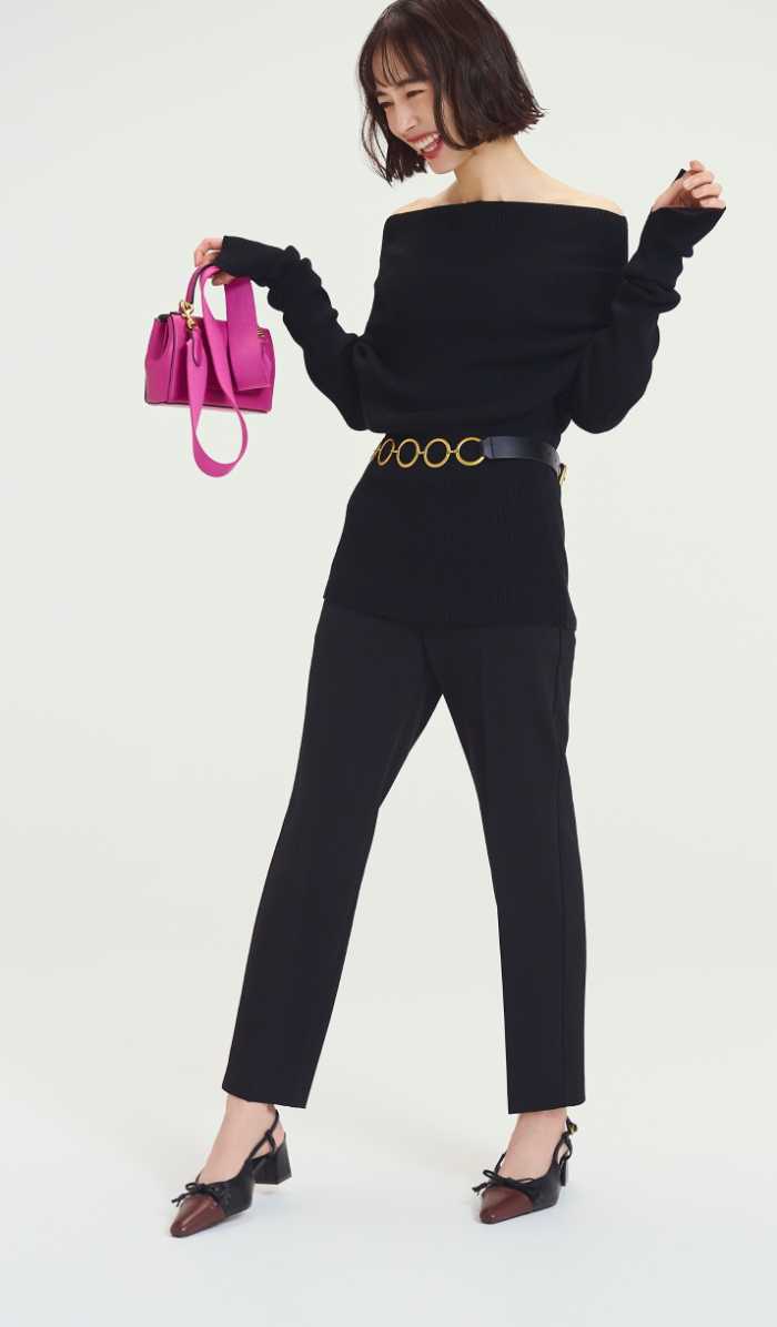 オフィススタイルやフェミニンなトップスとも相性◎。