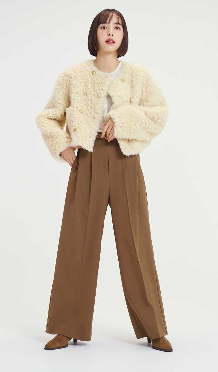 さらに「センタープレスワイドパンツ」(¥12,100税込)や「2タックワイドパンツ」(¥12,100税込)は、落ち感のあるストレートシルエットで女性らしいメリハリを演出。