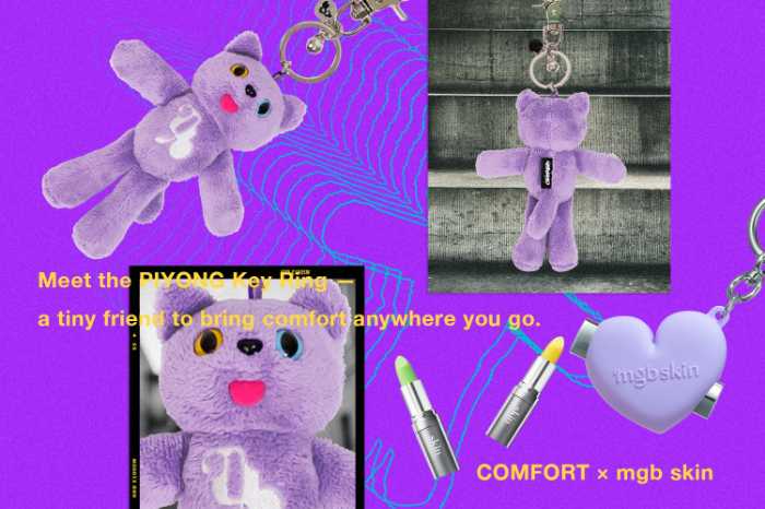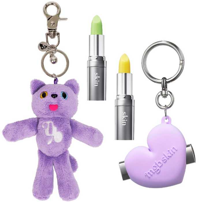 今回登場するのは、COMFORTのシグネチャーキャラクター「PIYONG」をモチーフにした〈PIYONG Key Ring〉、mgbの人気アイテム「mgb silicone lip case」の新色パープル、そして2種類の高保湿リップバームを含む4点セット。