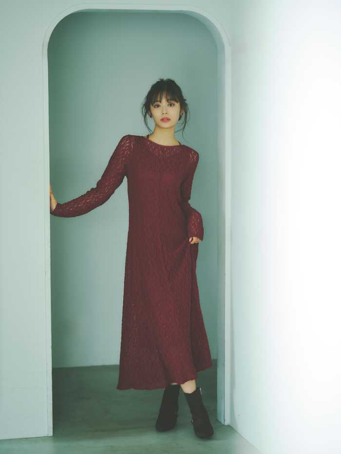 さらに、デイリーに活躍するニット(18,700円)や、ホリデームードを高める赤のレースワンピース(26,400円)など、1枚で旬のムードを演出できるコーデが揃います♪