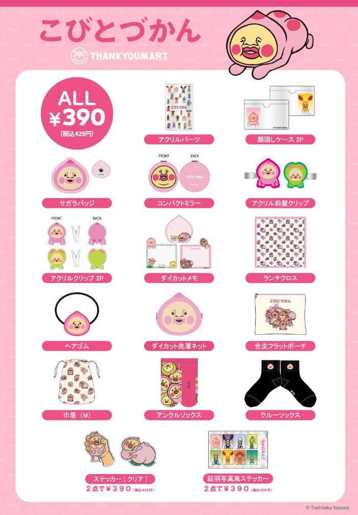 「こびとづかん×サンキューマート」限定グッズは、全17アイテムすべてALL390円(税込429円)で手に入る嬉しいラインナップ♡