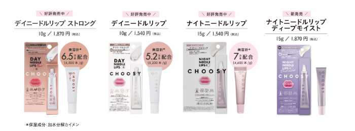 CHOOSYの「デイニードルリップ」と「ナイトニードルリップ」を組み合わせることで、24時間ケアが可能に。