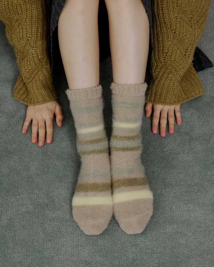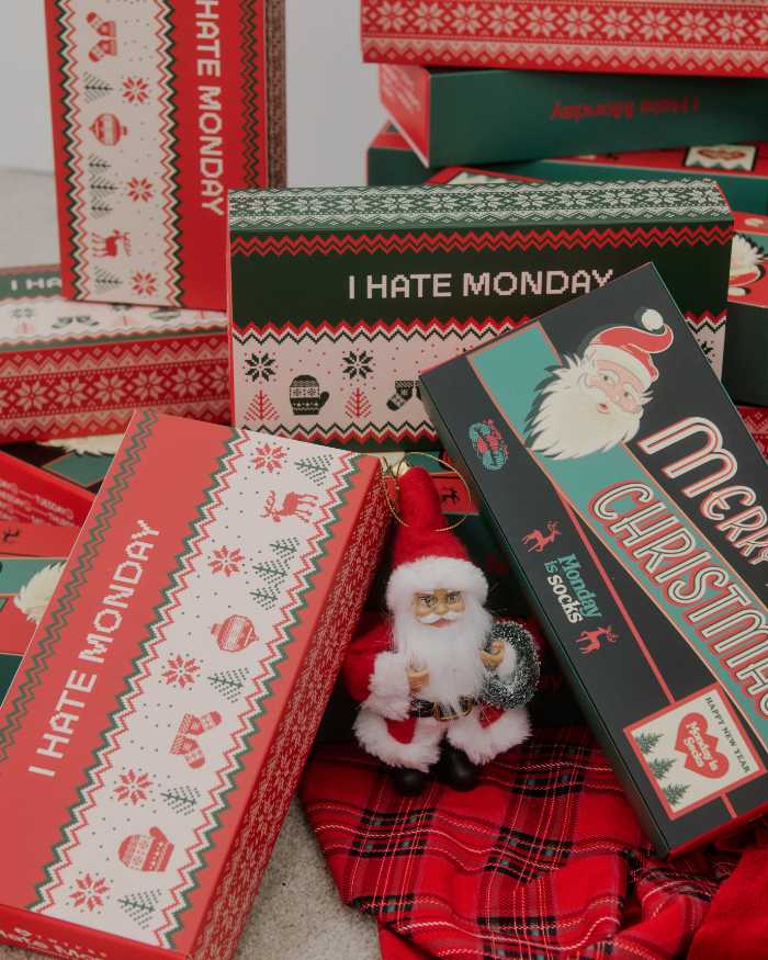 「I Hate Monday Fall/Winter 2025」では、まるで綿あめのようなふわふわ素材の《キャンディフロスソックス》、クリスマス限定デザインの《クリスマスソックス》、さらに《マンデーグローブ》《マンデーフットマット》など、冬の暮らしを彩るアイテムが豊富に登場。