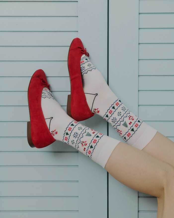 全4種(ディアグリーン、スノーアイボリー、クッキーネイビー、ホワイトサンタ)/ FREE(23〜27.5cm)/ 各1,980円(税込)。