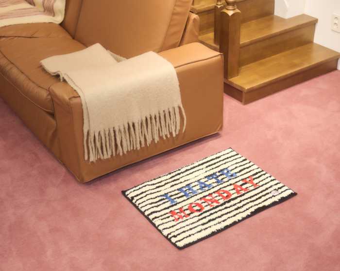 《マンデーフットマット》は全4種(ストライプアイボリー、ストライプブルー、チェックピンク、チェックネイビー)/ 各5,500円(税込)と、お部屋のアクセントにもおすすめです♪