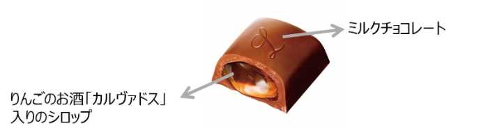 ファン待望の「カルヴァドス」は、フルーティーなりんごのお酒“カルヴァドス”を使用したシロップを、まろやかなミルクチョコレートにとじ込めた贅沢な一粒。