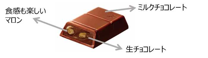 マロン3.6%を使用し、しっとりとしたチョコレートの中にマロンの香ばしさと洋酒のほのかな余韻が広がります。
