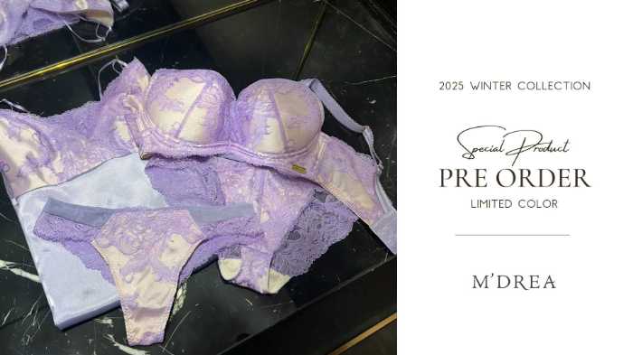 M’DREAの新色“Amethyst Veil”は、上品なラベンダーレースで肌の透明感を引き出し、内面の強さをもサポートする特別な一枚。