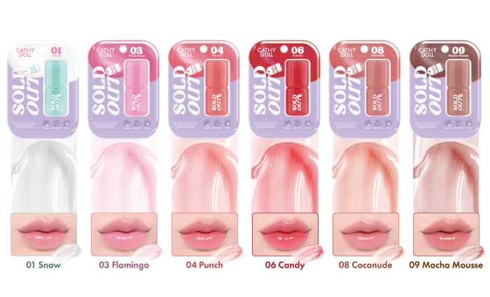 カラー展開は01 Snow(クリア)、03 Flamingo(ピンク)、04 Punch(ピーチ)、06 Candy(レッド)、08 Coconude(ヌード)、09 Mocha Mousse(ブラウン)の全6色。