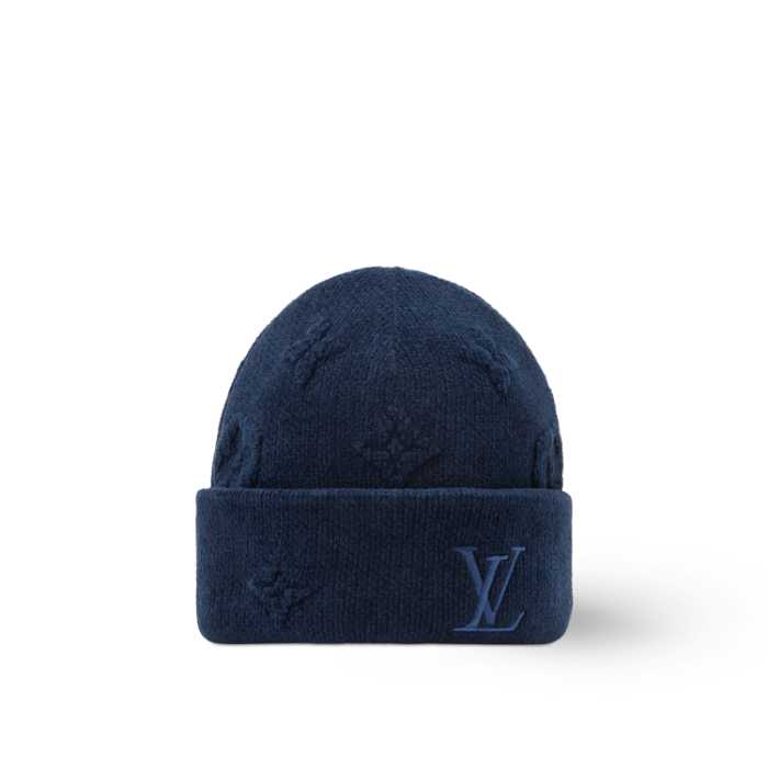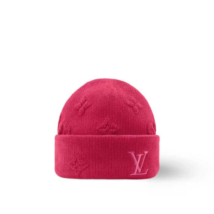 立体的なモノグラムとオーバーサイズのLV刺繍で遊び心をプラス。寒い季節も立体感のあるビーニーで表情豊かに♡