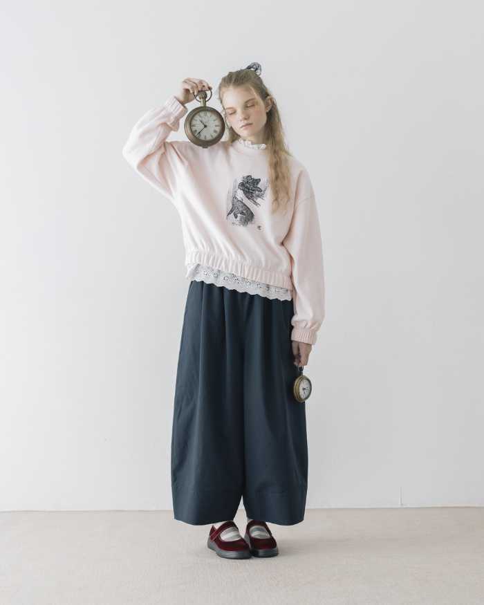ナチュラルでどこか懐かしい世界観が人気の〈Samansa Mos2〉が、再び“鏡の国のアリス”と夢の共演を果たしました。第2弾となる今回は、ルイス・キャロルの名作『鏡の国のアリス』をモチーフにした全8型を展開。アリスのエプロンをイメージしたワンピースや、物語の挿絵をあしらったスウェットなど、繊細なデザインの中に遊び心が光ります。冬の装いを物語の世界へ誘う、特別なコレクションです。