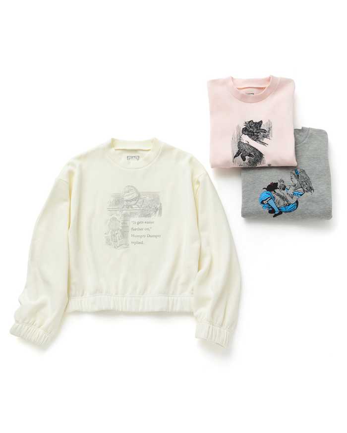 挿絵の世界をそのまま閉じ込めたような「裏起毛スウェット」(¥4,950)や「ジャカードニット」(¥5,390)も見逃せません。