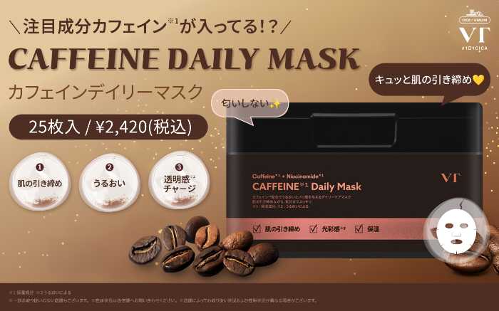 毎日の気温差や空調で、肌は知らず知らずのうちに乾燥やくすみを感じがち。そんな時に頼れるのが、VTの「カフェインデイリーマスク」。