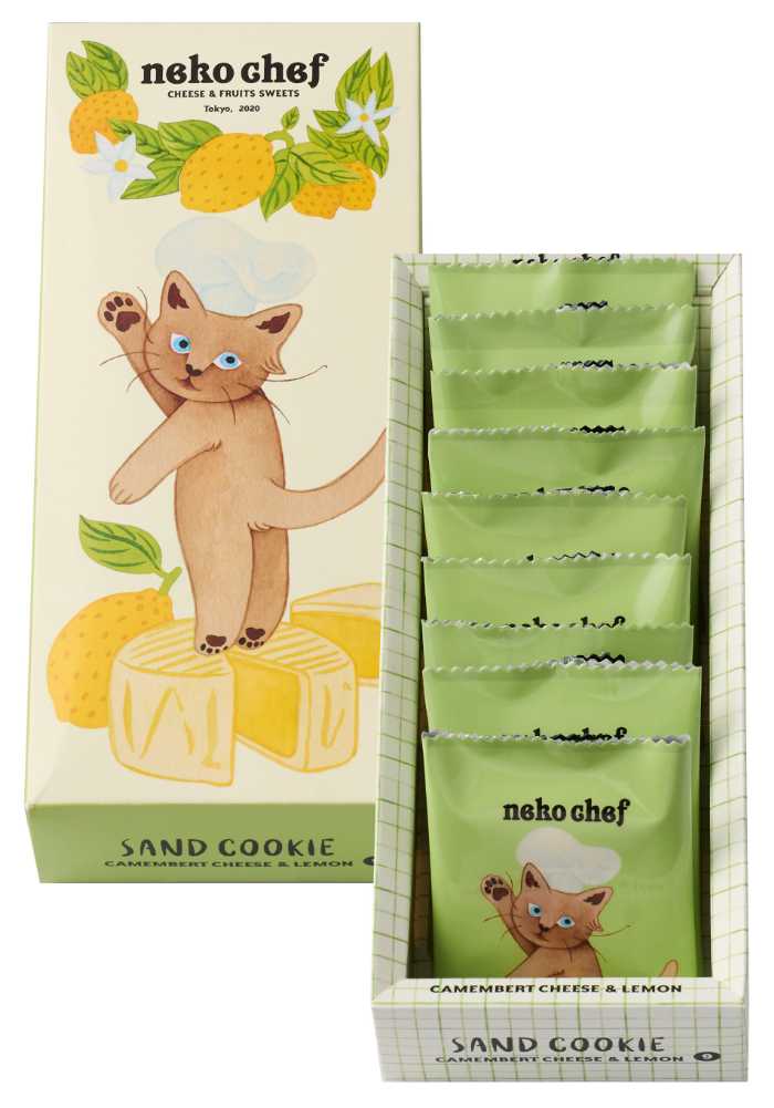 北海道産牛乳とレモンを合わせた爽やかなクッキー生地に、カマンベールチーズのチョコをサンドした「サンドクッキー(カマンベール&レモン)」が、ネコシェフから新登場!サクッとした食感と、レモンの酸味がチーズのコクを引き立てる贅沢な味わいです。見た目も愛らしいネコシェフのパッケージは、自分へのご褒美にもギフトにもぴったり。2025年11月21日(金)から全国で順次発売されます。
