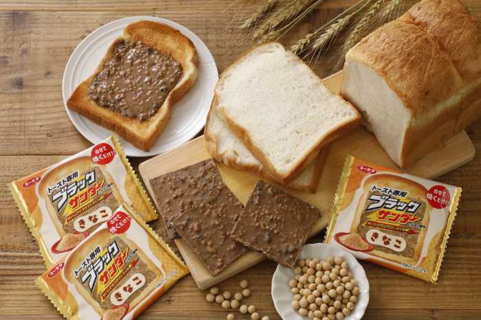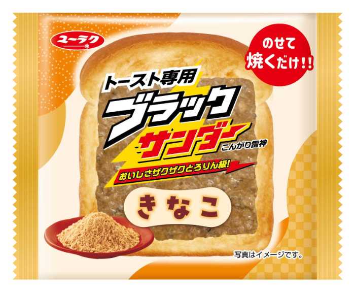 「トースト専用ブラックサンダーきなこ」は、パンにのせて焼くだけで香ばしい黒須きなこと大豆パフの絶妙な味わいを楽しめる一枚。