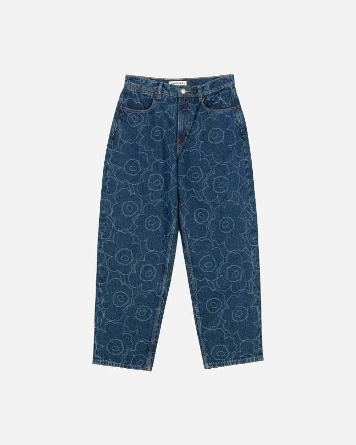 同シリーズの「Piirto Unikko Barrel デニムパンツ」は、ゆるやかなバレルシルエットが魅力。美しいカーブラインと花柄の組み合わせが、動きのあるスタイリングを叶えます。