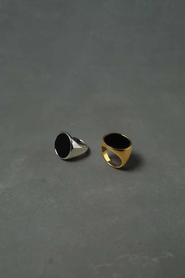 例えば《Onikis Black CollegeRing(SV925:27,500円/Brass:17,600円(税込))/サイズXS~XL》は、錦戸亮さんがファッションに合わせたいという思いから生まれたカレッジリング。
