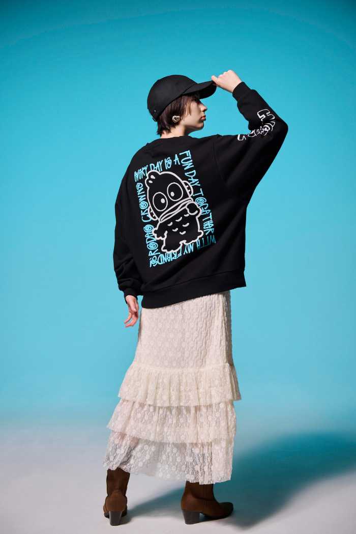 スウェットやワンピースはもちろん、トートバッグやキャップなど小物類も揃っているので、自分らしい“黒×キャラ”スタイルを楽しめるのが魅力。