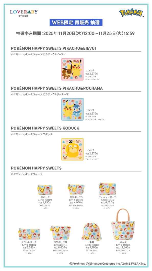 FEILER×ポケモンの人気シリーズ第2弾♡FEILER限定抽選で全10種再販売!