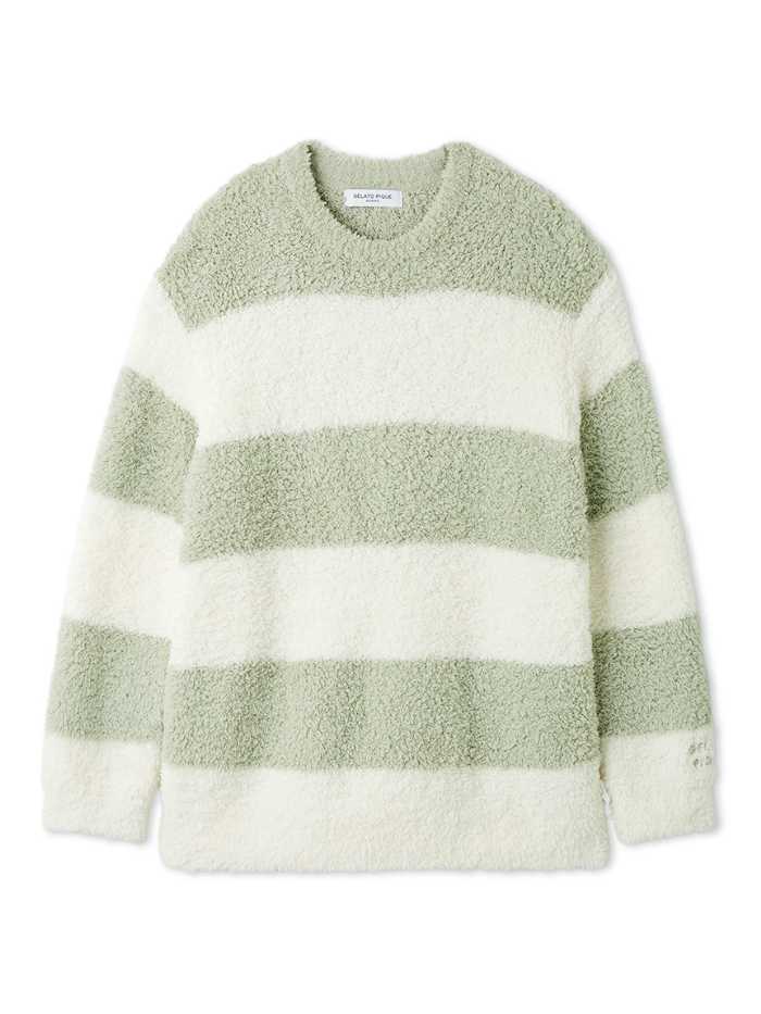 HOMMEの「ジェラート2ボーダープルオーバー」は税込8,140円で、ミント/ネイビー/オンライン限定のグレーを展開。ゆったりシルエットでリラックスタイムにぴったりです。