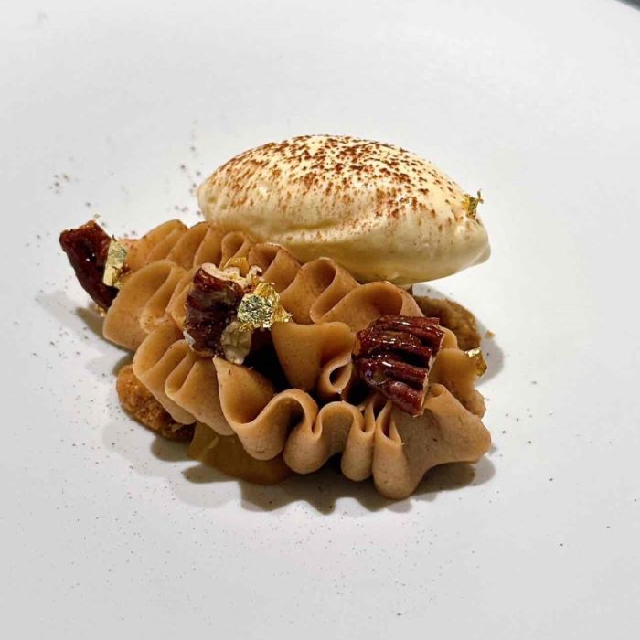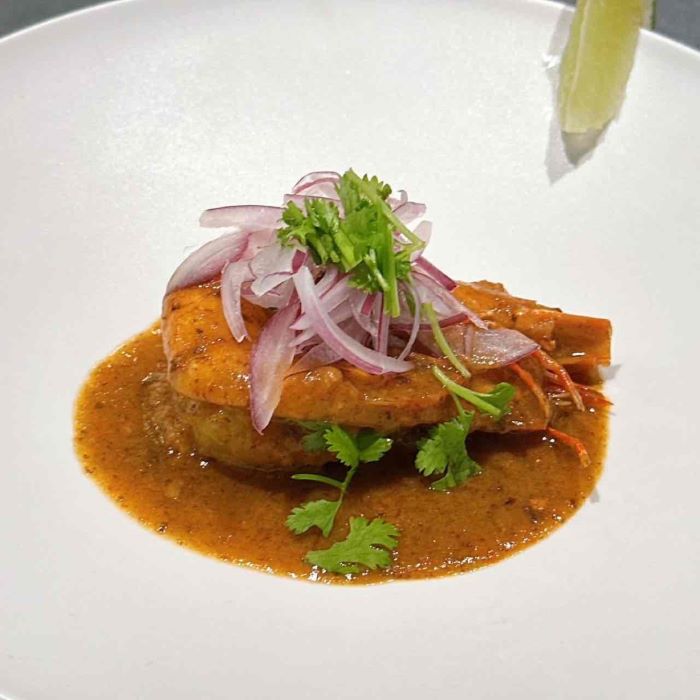 繊細な甘味を持つ白子とスパイシーなソースが対比をなし、上の食感と刺激が共鳴する印象的な一皿。
