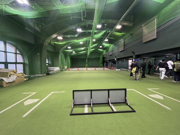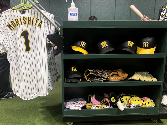 3塁側ブルペン、普段はなかなか入れない空間に、子どもたちとご家族も大興奮。テレビ中継で見たことがあるあのワンシーンの裏話など、この場にきて目で見て楽しみながら、選手らのユニフォームにバットなどをお借りして、記念撮影などを楽しみました。