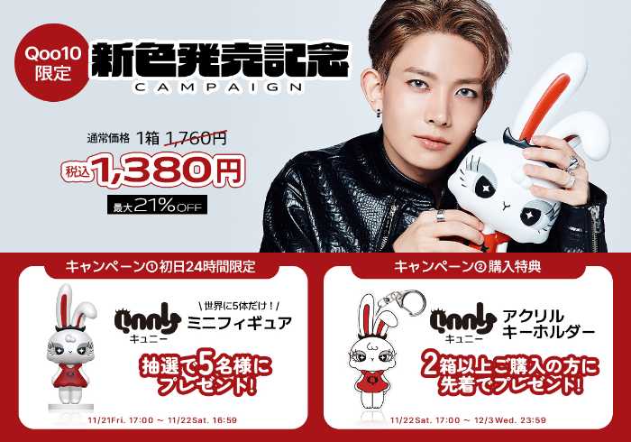 アンバサダー就任と新色発売を記念し、11月21日(金)からQoo10メガ割限定で2つのキャンペーンを開催。